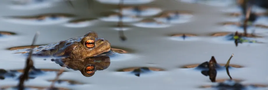 The size and shape of your pond is not important to wildlife. Depth needs to be considered. Frogs prefer very shallow water around the edges of the pond with a lot of plants on the surface where they lay the spawn. 20-30 cm is an ideal depth. For toads and newts 30 – 60 cm is better. Newts will place each egg singly on a leaf (water forget-me-not is a perfect shape) then fold it over to protect the egg from predators. Toads will wind long strings of spawn around the stems of underwater plants.