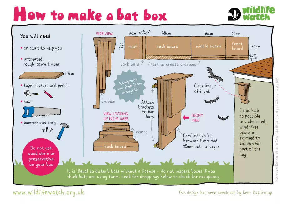 Bats also need shelter and somewhere to breed. A bat box is the obvious answer and can be installed in a tree or house-side. BCT have some excellent information on their website that you may find useful to help choose the right site and option for you and your local bats.