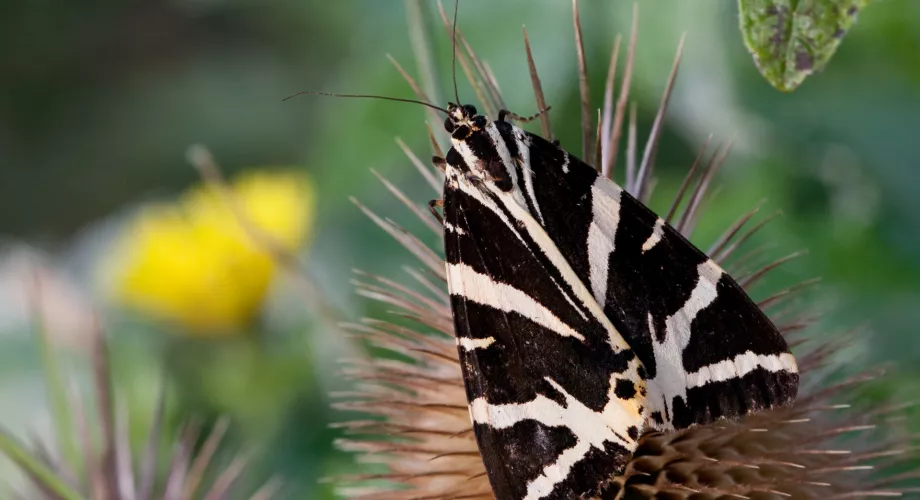 Deciphering the scientific names would take an entire article but the common names are a delight in themselves: among those trapped were nutmeg, straw dot, tawny-barred angle, tree-lichen beauty, birch marble (looks like bird poo), common plume, mother-of-pearl, dusky and canary-shouldered thorn, and the spectacular Jersey Tiger, a day-flying moth with black and creamy-white striped forewings and bold orange underwings.