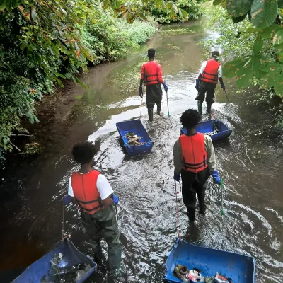 The next group visit was to Samphire Hoe (a 30-hectare nature reserve managed by the White Cliffs Countryside Partnership) along with other groups of young asylum seekers. The group enjoyed spending time outside and said they were interested in spending more time outside and making greater connections with nature, perhaps through practical volunteering. This led to the young people taking part in a river litter pick in partnership with White Cliffs Countryside Partnership.
