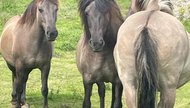 Konik ponies are one of the largest of the ‘pony’ breeds, often the size of a horse. 'Konik' literally means small horse. They are domestic ponies, bred over 100 years to live in the wild for conservation purposes.