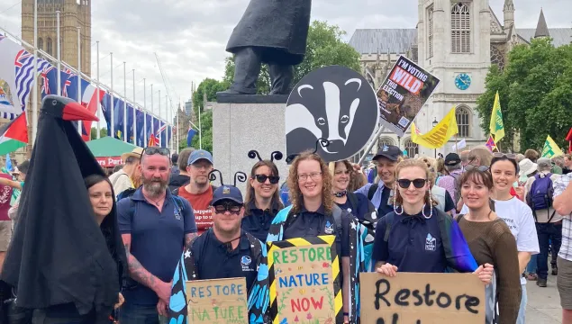 Kent groups amongst over 60,000 people who marched in London calling on next government to “Restore Nature Now” as students and supporters in Ramsgate hold a funeral for nature.