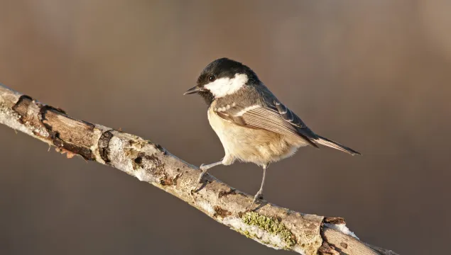 The coal tit is mainly found in coniferous woodland, but can also be spotted in gardens and parks. It is smaller than the great tit, but has a similar bicycle pump-like song.