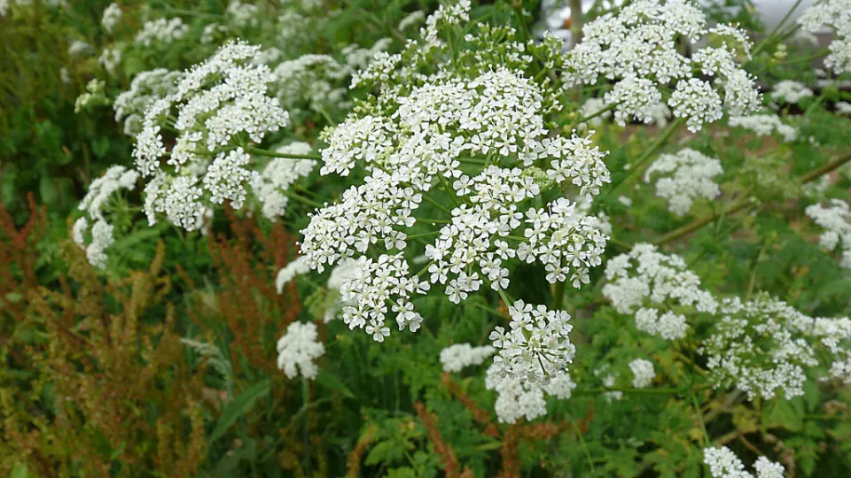 A notoriously poisonous plant, hemlock produces umbrella-like clusters of white flowers in summer. It can be found in damp places, such as ditches, riverbanks and waste ground.