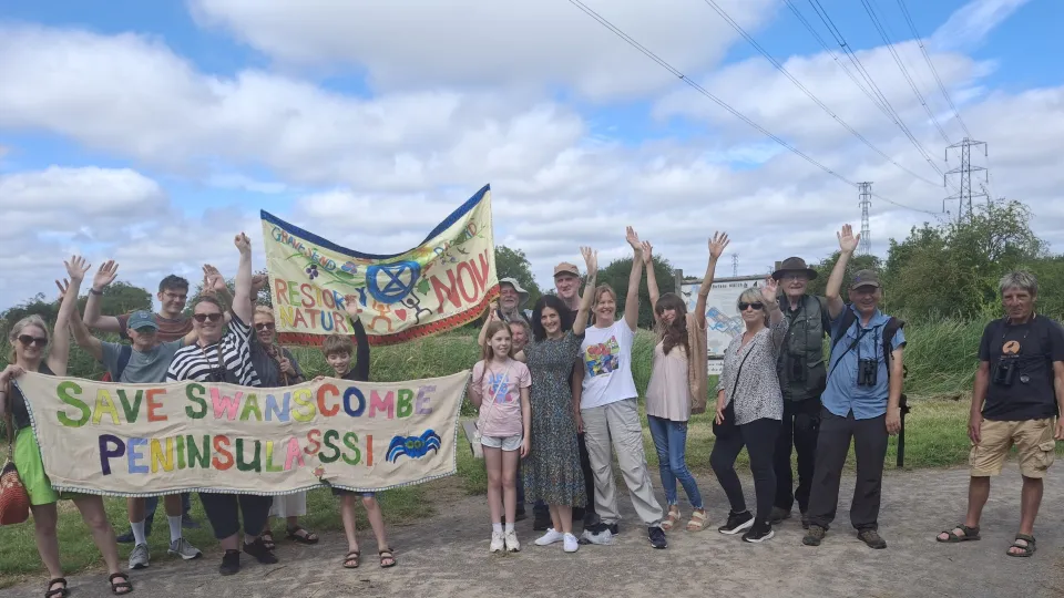 Residents of Swanscombe turned out in force for a community butterfly count and rally to Save Swanscombe Peninsula on Saturday, 20th July 2024.
