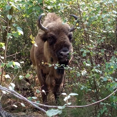 “We have seen them create a network of paths opening up trails of up to a meter wide. Through dense silver birch thickets that were once almost impenetrable, you can now comfortably walk along bison trails. And we are not the only ones using them, I have seen foxes, rabbits, and a slow worm sunbathing on one.