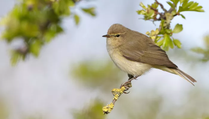 The chiffchaff is a bird of woodland, scrub, parks and gardens. It sings its name out loud in a simple 'chiff chaff chiff chaff' song, which it performs from the tree canopy. Some chiffchaffs stay all year-round, but most migrate here from Africa. They are one of our earliest arrivals, singing their hearts out from the end of February onwards.
