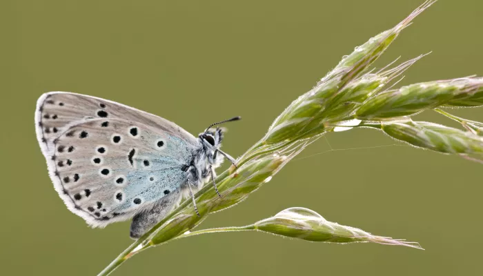 The large blue is the biggest blue butterfly. Adults fly for a very short period from the end of June to the beginning of July. It has always been rare in the UK, but declined dramatically during the 20th century and became extinct in 1979. Reintroduced in the early 1980s, small populations are now surviving in the south of England. It breeds in warm, dry, unimproved grasslands, such as coastal or limestone grasslands.