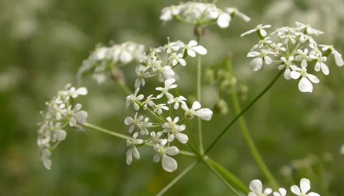 Cow parsley has large, flat umbrellas of small, white flowers, and large, fern-like leaves. One of several common members of the carrot family, this is the most abundant, and the earliest-flowering of the umbellifers.