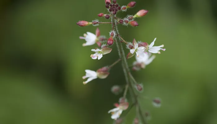 Enchanter's nightshade is hairy plant that is actually a member of the willowherb family, rather than being related to deadly nightshade. It can be found in woodlands, hedgerows, gardens and even at the foot of old walls; it especially likes heavy, rich soils. It bears loose clusters of tiny, pinky-white flowers from June to August. Enchanter's nightshade can spread through rhizomes, which are creeping, root-like stems that move through the soil.