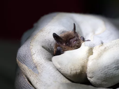 The small, shaggy-furred Brandt's bat roosts in all sorts of houses, old or modern. It is similar to the whiskered bat and they often roost together, but in separate colonies. It feeds low to the ground in woodland and near water.
