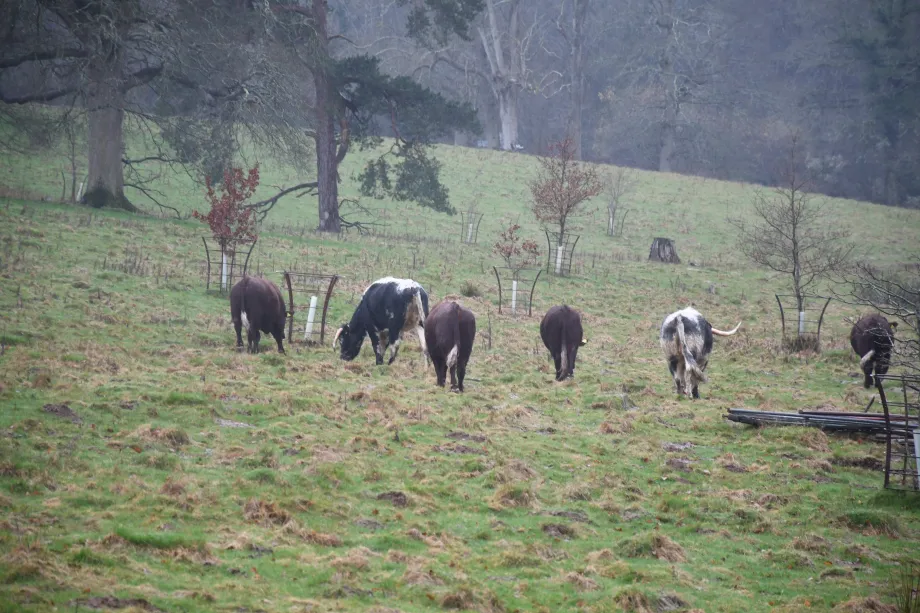 Our wilder grazing herd of longhorn and Sussex cattle moved in (or “moooved,” if you will) to manage the land naturally. Their grazing creates light and space, allowing wildlife to thrive. Visitors have fallen in love with our four-legged landscapers, and honestly, who can blame them?