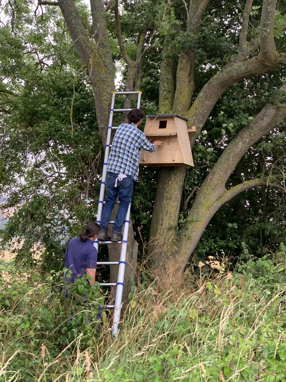 Barn owl boxes have been in place for many years, replacing or supplementing natural hollow trees or roosts in buildings. Owls often use two boxes, one for roosting and one for the brood. Observers are now waiting for owlets to appear, anxious about cold wet weather and predators. As owl nests are always deep, chicks must climb up inside to the exit hole, which means they are already strong enough to climb onto a branch. We hope.