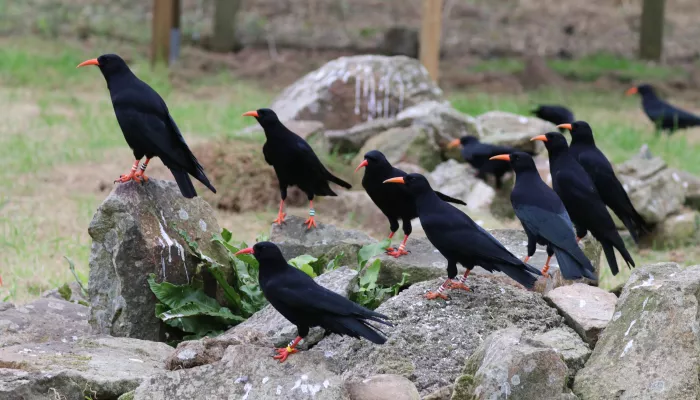 In 2010 we partnered with the Durrell Wildlife Conservation Trust with the aim of breeding and releasing choughs in Jersey, where they had been extinct for over 100 years. Several years of breeding and research lead to the first release on Jersey in 2013. The first wild chick was fledged in 2015, both parents being birds from Paradise Park. This was the first wild, red-billed Chough to be hatched in Jersey for a century and marked a significant step in the re-establishment of the species in the Channel Islands where there is now a population of about 40 birds.