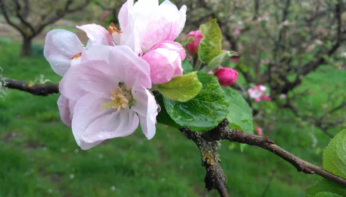 Past the orchard fence, the footpath dips into a small woodland. Last week the bluebells were at their peak – rich blue, scented carpet. But by the start of May, they are beginning to lose their best. We can see the effect of global warming. Our son was born on 9th May 1975, when he was little we used to walk in the woods on his birthday, and pick just a very small bunch of the very first bluebells to open. On his birthday nowadays, only faded blooms seem to be left! But fat seed-heads take their place.