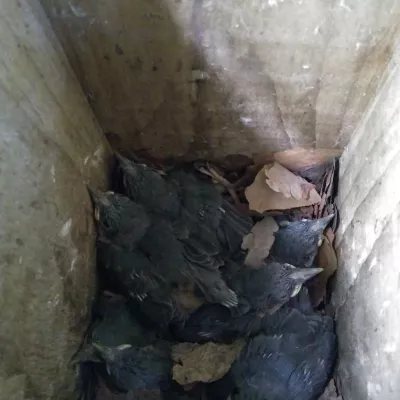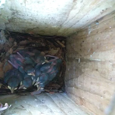 As we stroll along, piercing through the sounds of singing robins, blackbirds, chiffchaffs and blackcaps, are the excited piping and trilling notes of a nuthatch. Sure enough, we stand quietly and see a nuthatch pop into a great tit nesting box. Nuthatches happily use tit nesting boxes, finding the hole made for great tits just right. However, that does not stop them from adding their habitual mud defences in and around the hole – just to be sure. Whereas blue and great tits use a mossy base with added feathers and fur, a nuthatch nest is solely built of dried leaves.