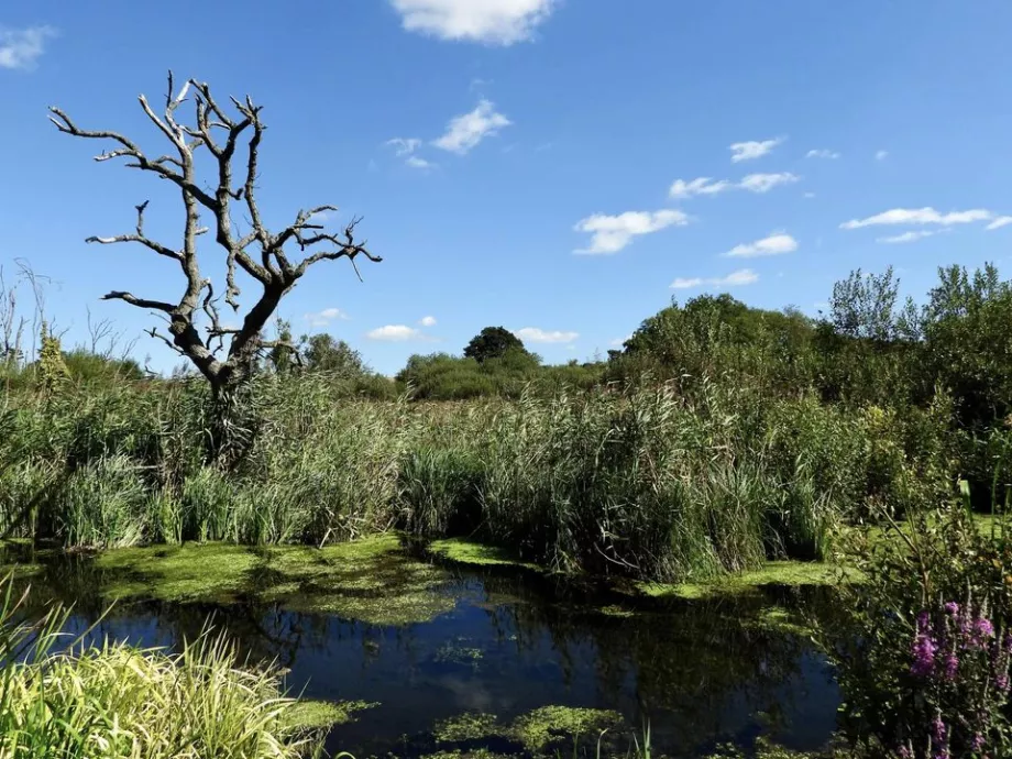 A wetland habitat, Ham Fen is full of life. This image shows the waters surrounded by reeds and an old tree standing proud against the sky ©Alan Boulter