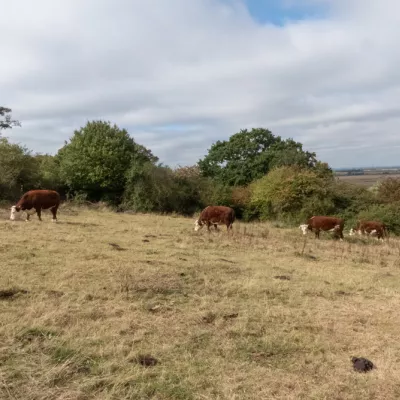 There are cattle on Wraik Hill during the months April to October and their number varies from four to eighteen. Currently, I look after four Herefords and four Sussex heffers. It’s amazing how such big animals can all disappear into a hedgerow. I once had fourteen smaller heffers all hiding within an overgrown hedge.
