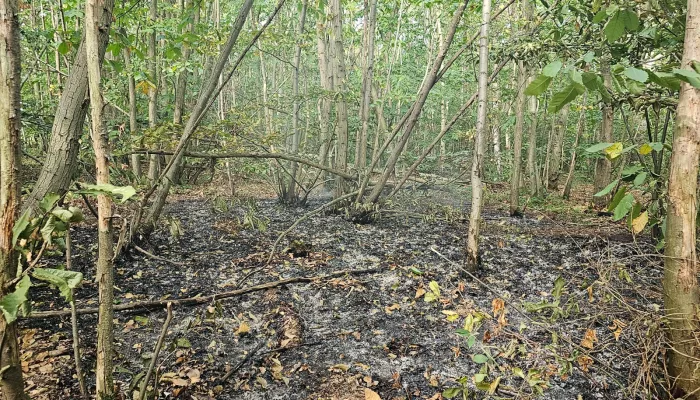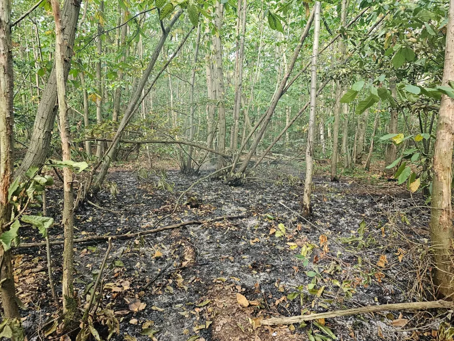 Remnants of a fire started at Blean woods by campers