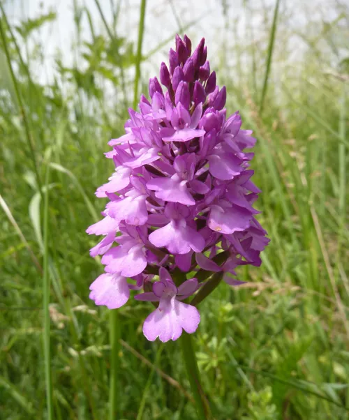 Sainfoin and pyramidal orchid are already present on the verge along with other flowers such as common bird’s-foot-trefoil and ox-eye daisy.