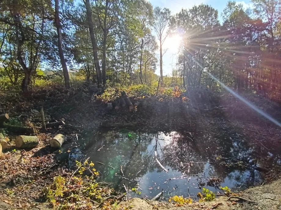 And talking of trees in the wrong place, the volunteers have spent several days coppicing and clearing brash in the former pig area and opening up a nearby pond. Allowing sun back onto these light-starved areas will encourage the return of oxygenating plants, followed swifty by dragonflies, frogs, and hopefully the return of great crested newts.