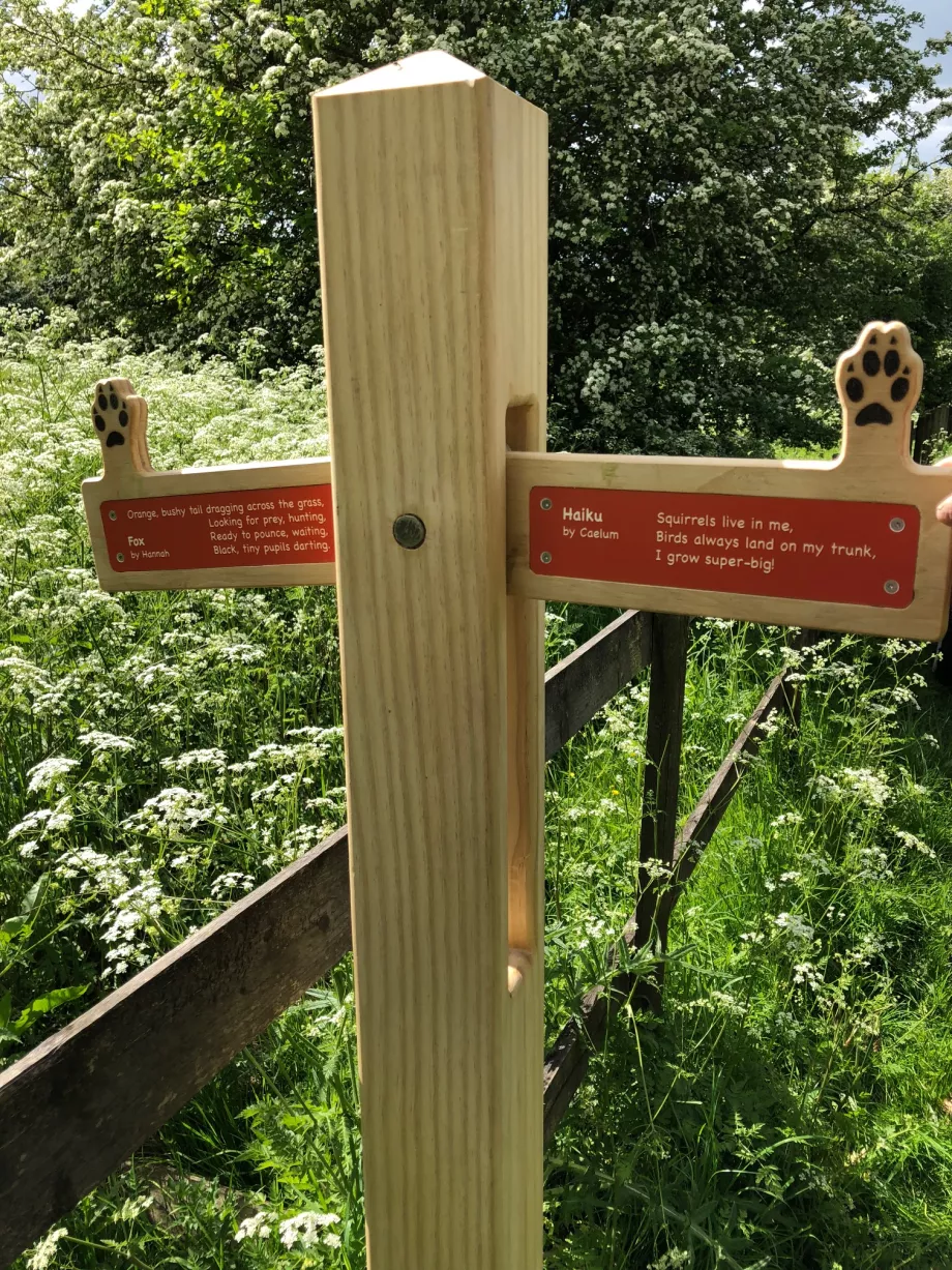Hearing their excitement each time they found another section of the trail and witnessing the positive effects on health and wellbeing of simply being outside with nature. Seeing the shocked expression on a local dog’s face at his regular woodland walk suddenly being filled with 24 excited children and the comments from his owner about how much she has enjoyed reading all the poems on their daily lunchtime walk.