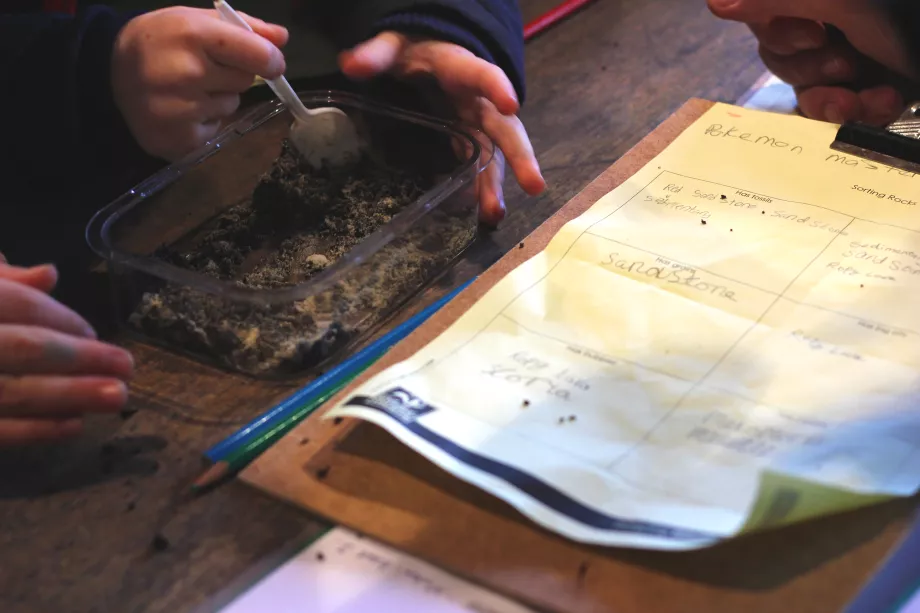 We discovered the Kent Rock display beside the long grass mini-beast area shows all the different types of rocks that you can find in Kent. This display shows that rocks take millions of years to form and transform!
