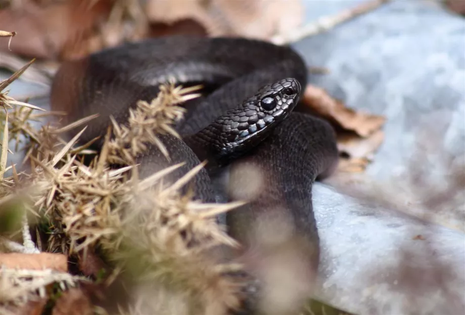 The thick vegetation they use to hide from predators and hibernate is known as a hibernaculum and some adders may use the same hibernaculum for life. These areas are vital for the survival of the species. Hibernacula can include living tree root systems or unused burrow networks and they must be resistant to floods and frost.