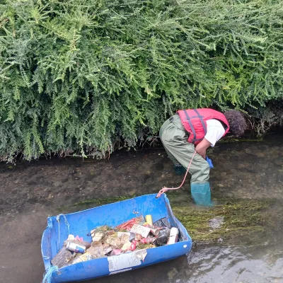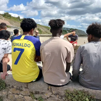 The next group visit was to Samphire Hoe (a 30-hectare nature reserve managed by the White Cliffs Countryside Partnership) along with other groups of young asylum seekers. The group enjoyed spending time outside and said they were interested in spending more time outside and making greater connections with nature, perhaps through practical volunteering. This led to the young people taking part in a river litter pick in partnership with White Cliffs Countryside Partnership.