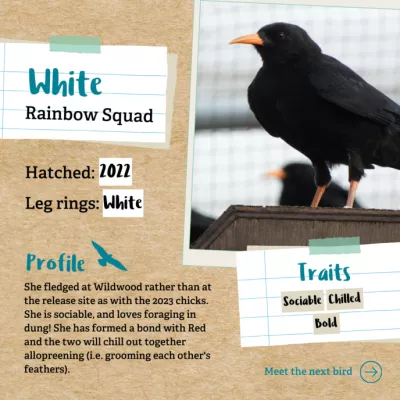 Get personal with our chough project and learn about the individual chough that are part of the cohort of chicks being released in Dover.