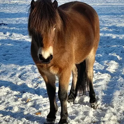 This breed is compact and strong with neat feet and a good sense of balance. They have hooded eyes, long lashes and a thick, short tuft of hair at the top of the tail. These are all adaptations to cope with the blizzard conditions of Exmoor during the winter. These ponies do best on sparse vegetation, having been raised on the heather and gorse of the moor. They are wary and suspicious, keeping their distance from all but the people they know the very best.