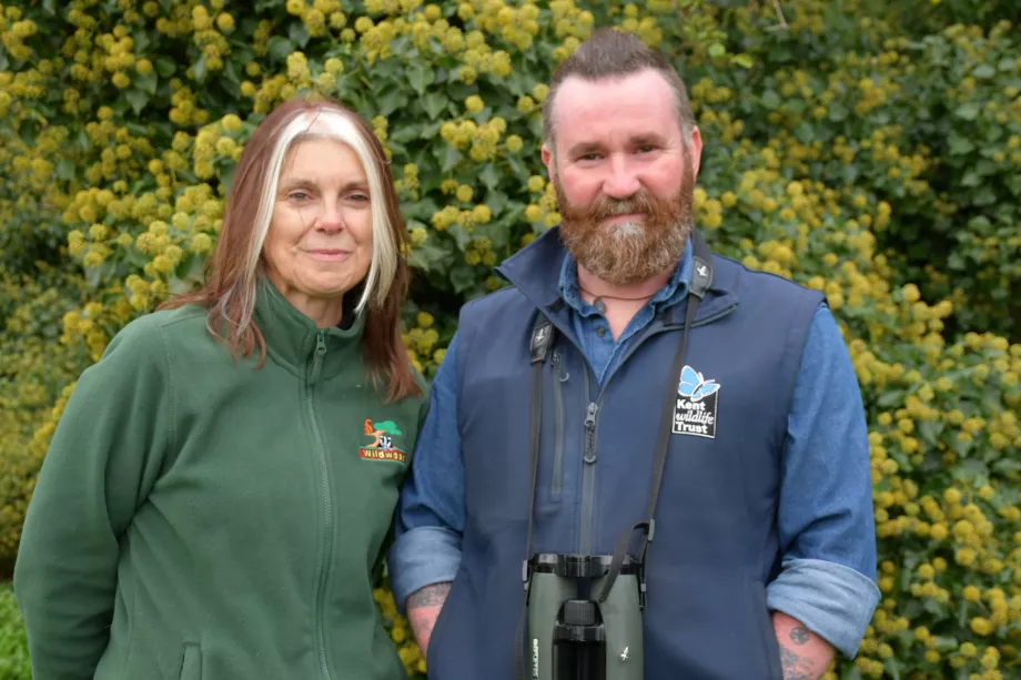 Laura Gardner of Wildwood Trust with Paul Hadaway of Kent Wildlife Trust. ©️ Sally Smith, Kent Wildlife Trust
