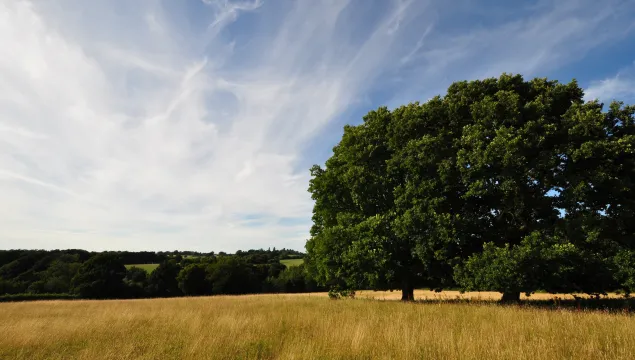 A small valley with grassland and ancient woodland.