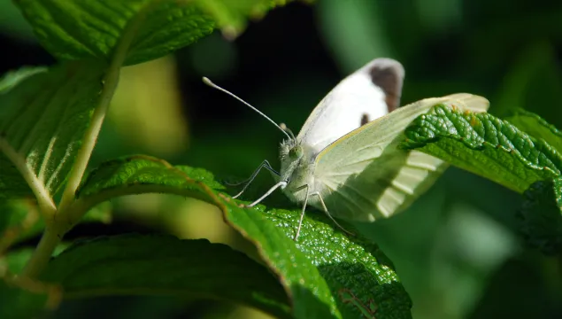 The large white is a common garden visitor - look out for its brilliant white wings, tipped with black.