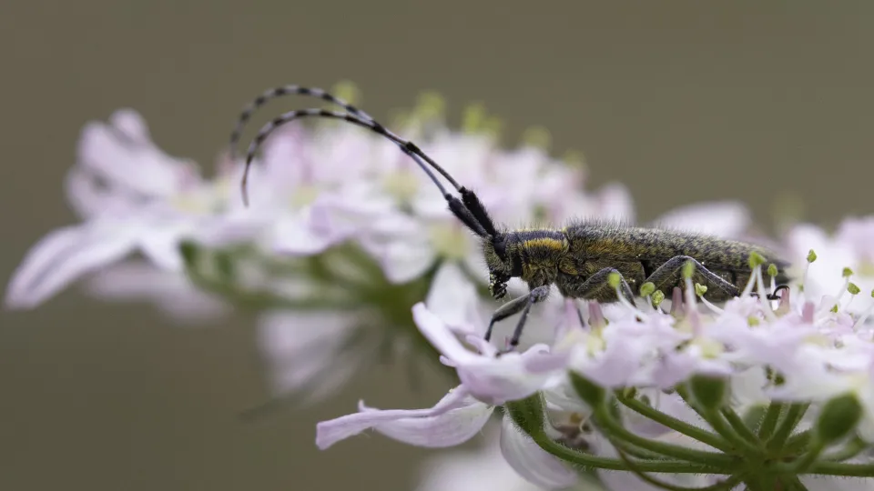 This beautiful beetle is fond of damp meadows and woodland rides, where it's often found on umbellifers or thistles.