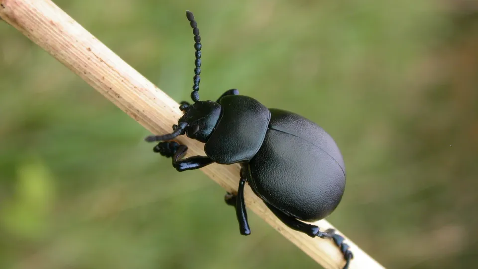 The common name of the Bloody-nosed beetle derives from its unusual defence mechanism: when threatened, it secretes a distasteful blood-red liquid from its mouth. This flightless beetle can be found on grassland and heathland, and along hedgerows.