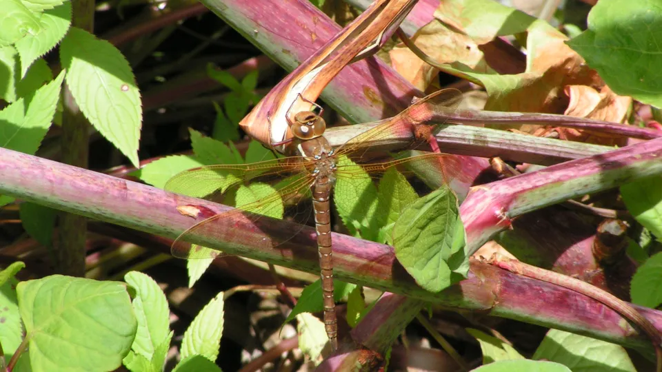 A common dragonfly of canals, marshes, reedbeds and lakes, the Brown hawker can be seen patrolling the water or 'hawking' through woodland rides. It is easily distinguished by its chocolate-brown body.