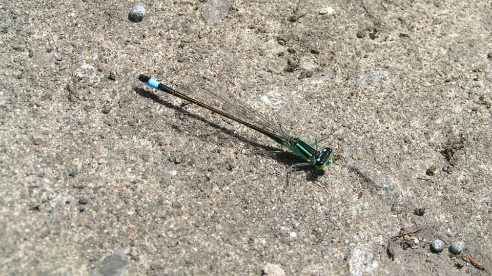 The Blue-tailed damselfly does, indeed, have a blue tail. It is one of our most common species and frequents gardens - try digging a wildlife pond to attract dragonflies and damselflies.