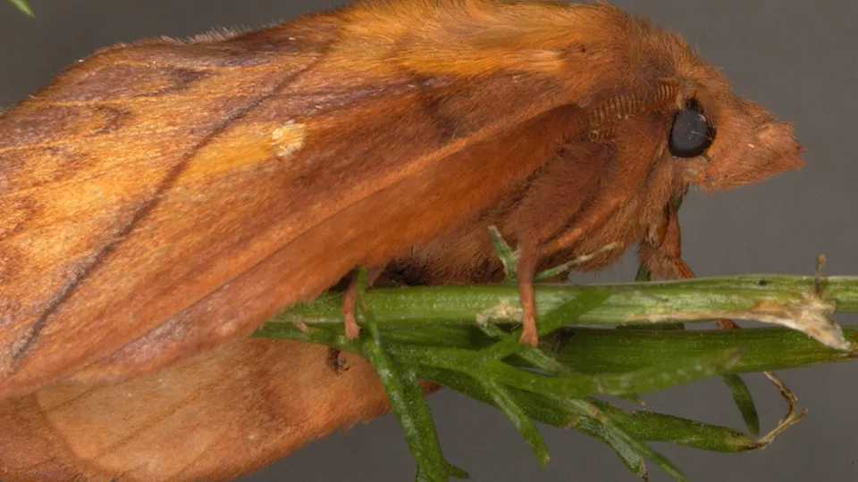 This large, fluffy-looking moth is on the wing in July and August, but you might spot a caterpillar at almost any time of year.
