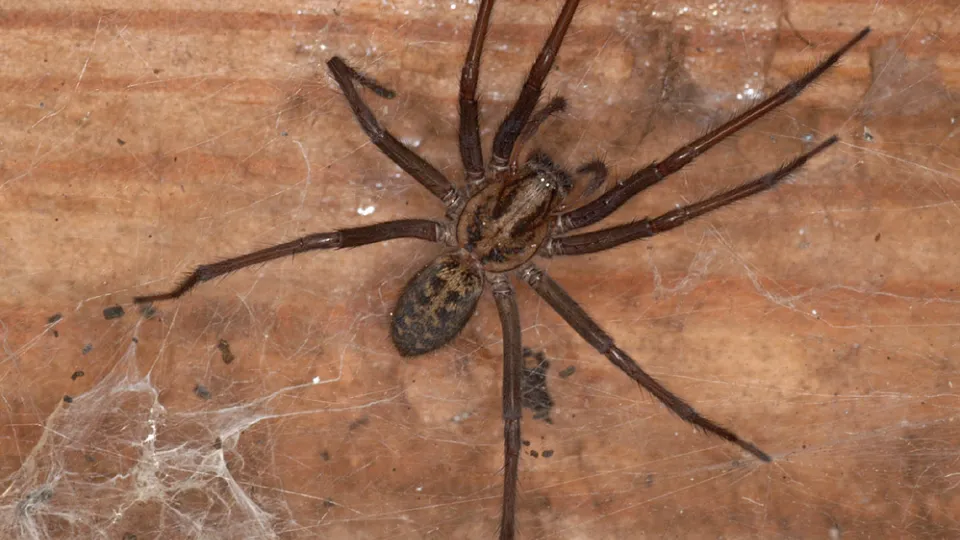 The giant house spider is one of our fastest invertebrates, running up to half a metre per second. This large, brown spider spins sheet-like cobwebs and pops up in the dark corners of houses, particularly in autumn.