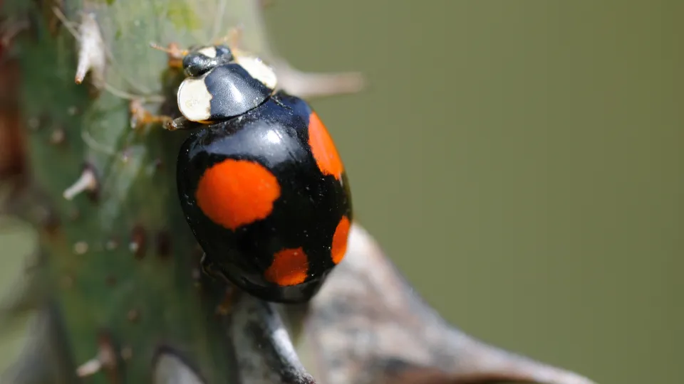 The large eyed ladybird is unmistakeable: it is our only ladybird with yellow rings around its black spots. Ladybirds are beneficial insects, managing garden pests - encourage them by putting up a bug box.