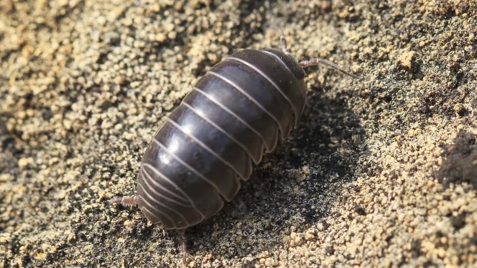 The defensive mechanism of the pill woodlouse is very recognisable - it curls itself into a tight ball, only showing its plated armour to its attacker. It is an important recycler of nutrients, feeding on decaying matter.