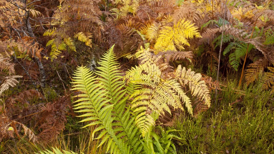 Our most familiar fern, bracken can be found growing in dense stands on hillsides, moorland, heathland and in woodlands. It is very large and dies back in winter, turning the landscape orangey-brown.