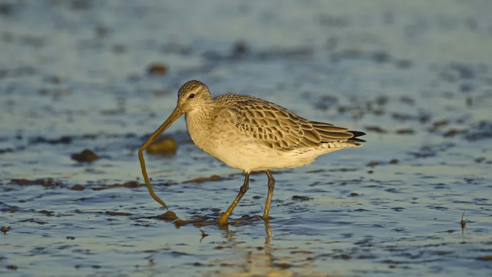 The bar-tailed godwit winters in the UK in the thousands; look for it around estuaries like the Thames and Humber. In spring, the males display arresting breeding plumage, with brick-red heads, necks and chests.