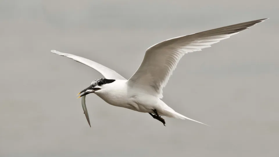 Found around our coasts during the breeding season, the large Sandwich tern can be spotted diving into the sea for fish such as sandeels. It nests in colonies on sand and shingle beaches, and islands.