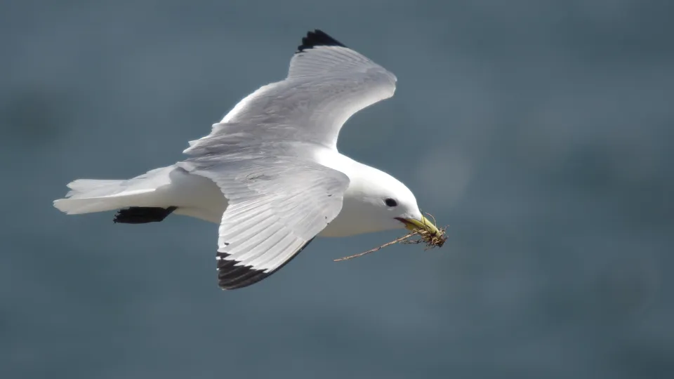 A pretty, little gull, the kittiwake can be spotted nesting in colonies on clifftops and rock ledges around the UK's coast. It spends the winter out at sea.