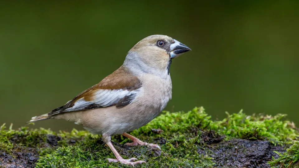 The hawfinch is the UK's largest finch, with an enormous bill powerful enough to crush a cherry stone. Despite their size, they are typically elusive, especially during the summer nesting season.