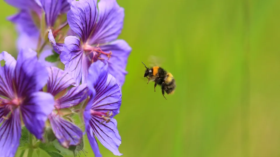 The Heath bumblebee is not only found on heathland, but also in gardens and parks. It nests in small colonies of less than 100 workers in all kinds of spots, such as old birds' nests, mossy beds and even roofs!