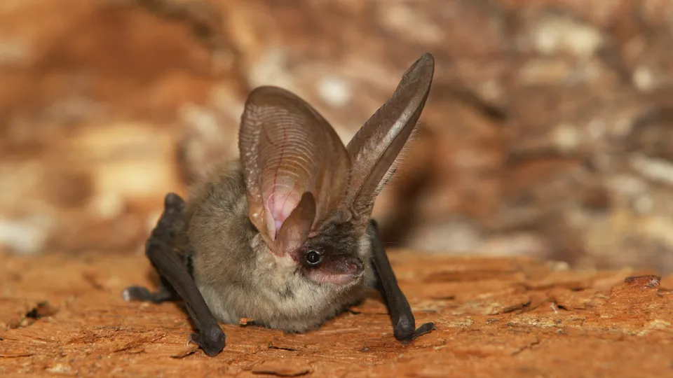 The grey long-eared bat certainly lives up to its name - its ears are nearly as long as its body! It mainly forages over grassland and meadows, but is very rare in the UK.