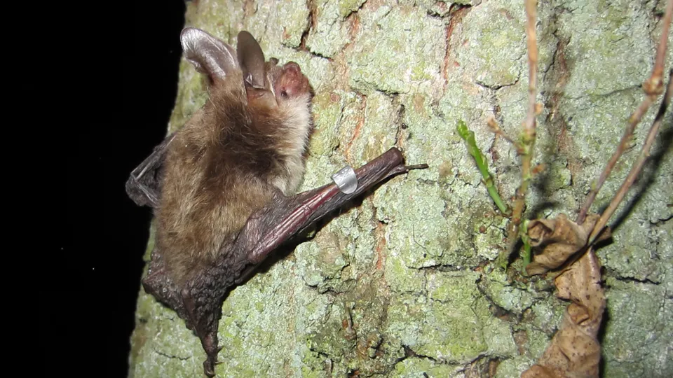 The Leisler's bat flies fast and high near the treetops, but you might also spot it flying around lamp posts, looking for insects attracted to the light.